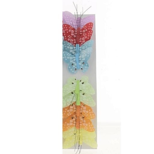 Boite de 24 Papillons sur pic assortiment de 6 couleurs / PL027-A6