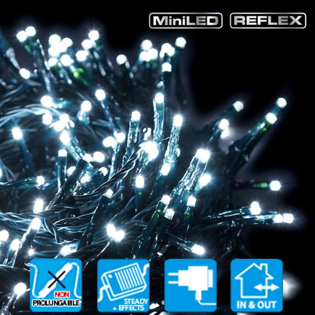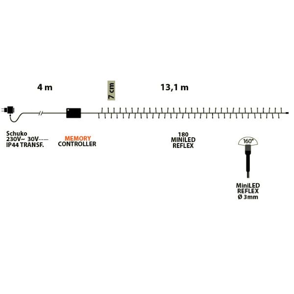 Chaîne légère composée de 180 LED blanc FROID avec contrôleur de mémoire pour 8 variations de lumière / longueur totale 17.1 m