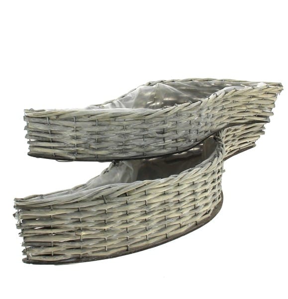 LOT DE 2 VANNERIES VAGUE EN OSIER GRIS