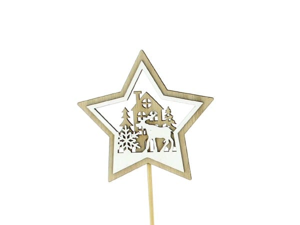 SACHET DE 12 PICS ÉTOILES NATUREL/BLANC H32CM