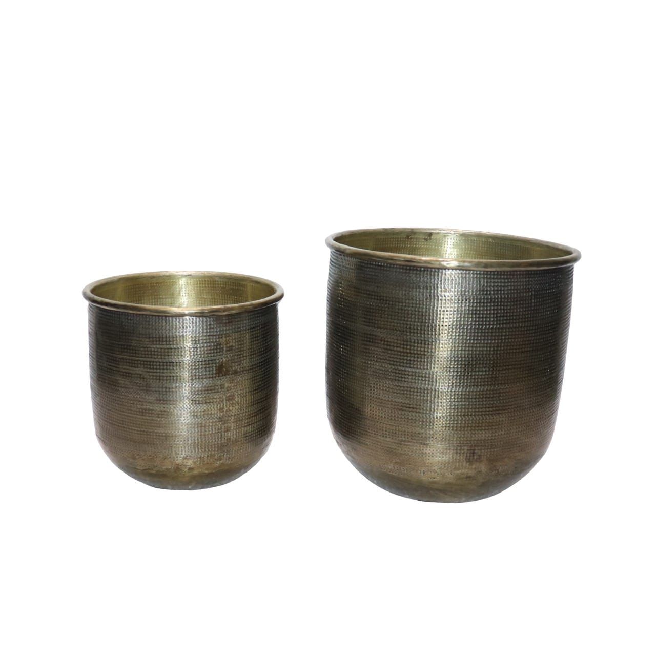 SET DE 2 POTS CHATAI EN MÉTAL TEXTURÉ DORÉ