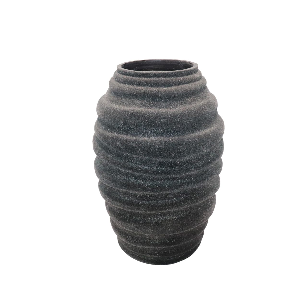 VASE OVALE SPIRALE EN VERRE FINITION VELOURS GRIS